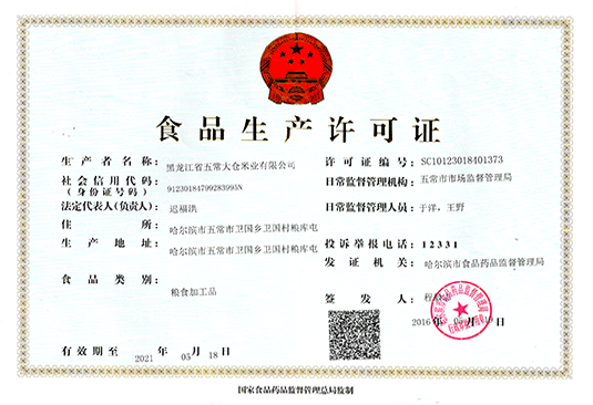2006年 2007年 2009年 2011年 2012年 2014年 2016年 2018年 2006年選址五常稻米的核心產(chǎn)區(qū),五常政府招商引資 營(yíng)業(yè)執(zhí)照 2007年公司取得了全國(guó)工業(yè)產(chǎn)品生產(chǎn)許可證 2009年被北京五洲恒通認(rèn)證有限公司認(rèn)證為有機(jī)大米并頒發(fā)有機(jī)大米認(rèn)證證書 2009年被黑龍江省糧食行業(yè)協(xié)會(huì)授予“省級(jí)放心米” 2011年被授予“第十一屆中國(guó)國(guó)際糧油產(chǎn)品展覽會(huì)金獎(jiǎng)”的稱號(hào) 2014年參加第十五屆中國(guó)綠色食品博覽會(huì),隆福源五常稻花香榮獲金獎(jiǎng)。 2016年通過ISO9001國(guó)際質(zhì)量管理體系認(rèn)證 2018年有機(jī)產(chǎn)品認(rèn)證證書